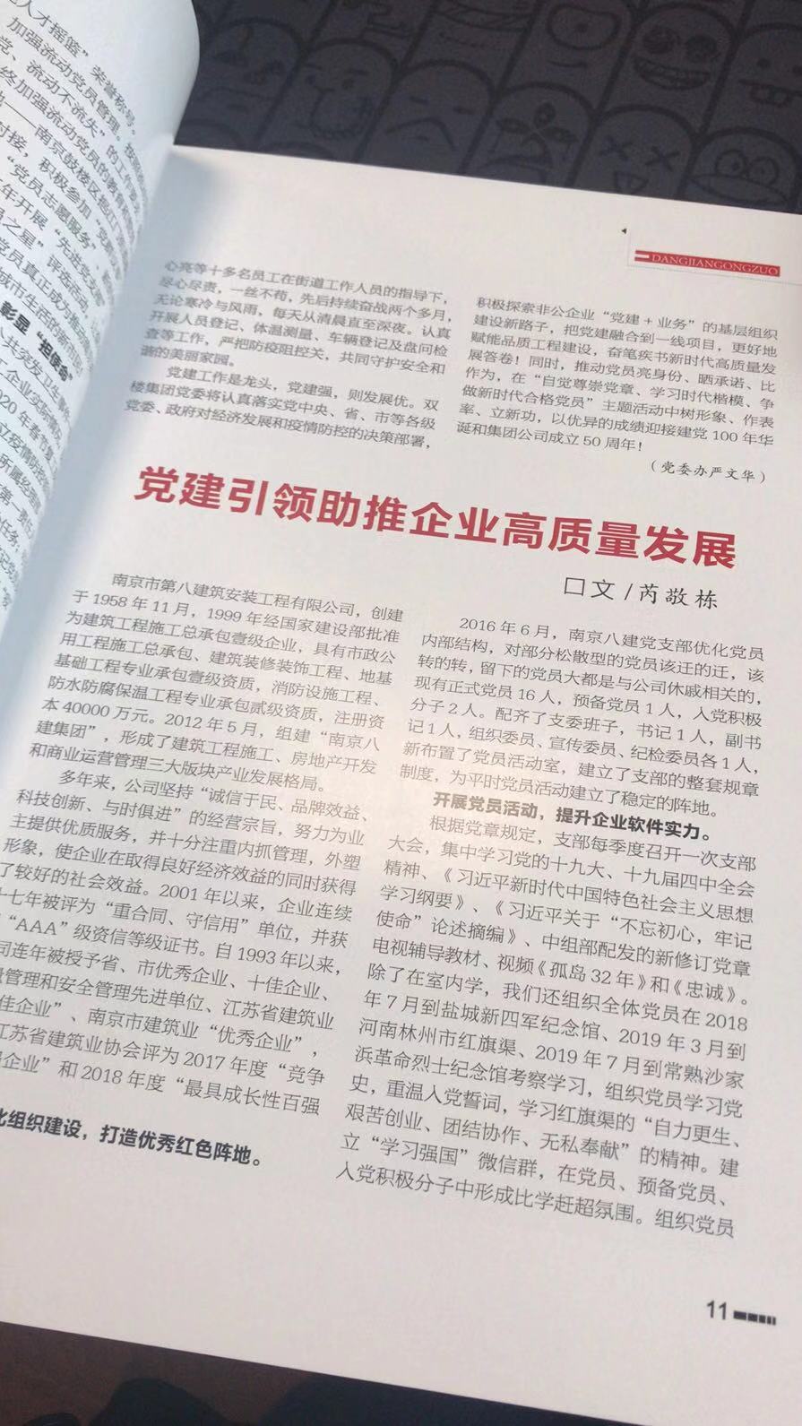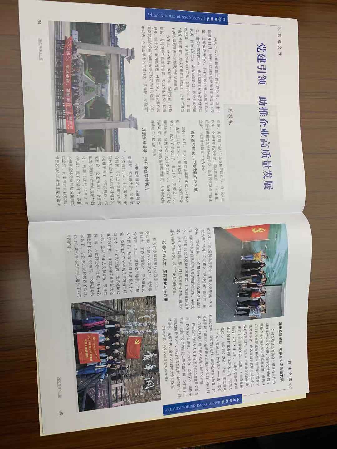 《黨建引領助推企業(yè)高質量發(fā)展》發(fā)表在2020年《南京建筑業(yè)》第三期上。 -