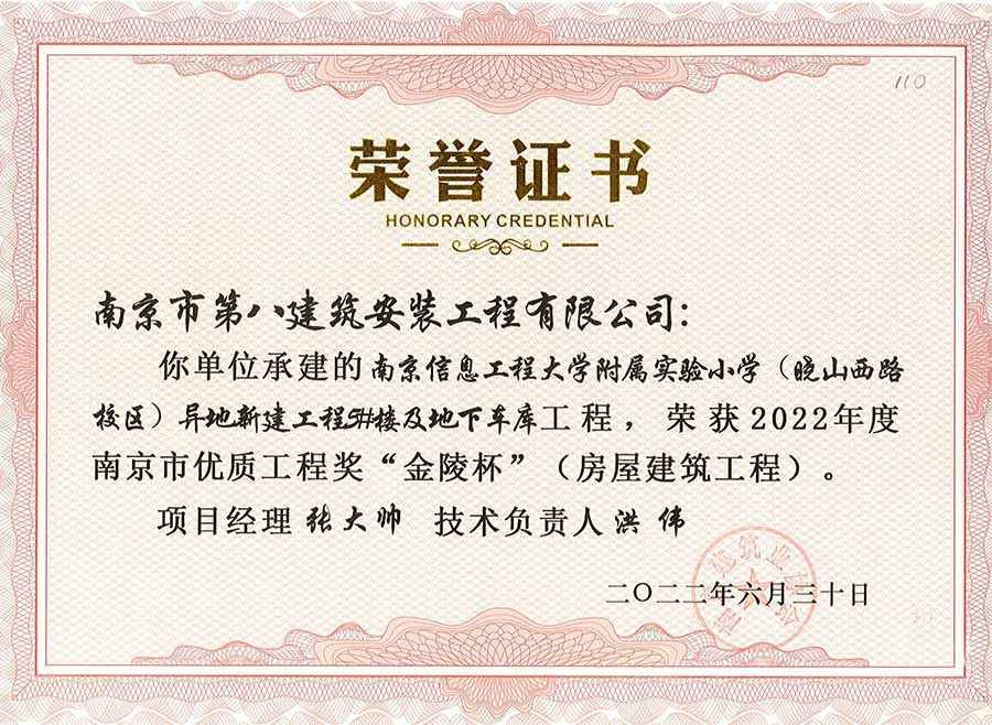 6月30日,南京建協(xié)下發(fā)了(2022)24號文件《關(guān)于公布2022年南京市優(yōu)質(zhì)工程獎“金陵杯”(房屋建筑類、軌道交通工程)項目名單的通知》,決定授予“幸莊人才公寓”等208個項目為2022年南京市優(yōu)質(zhì)工程獎“金陵杯”,我公司承建的13個項目榮獲榮譽。